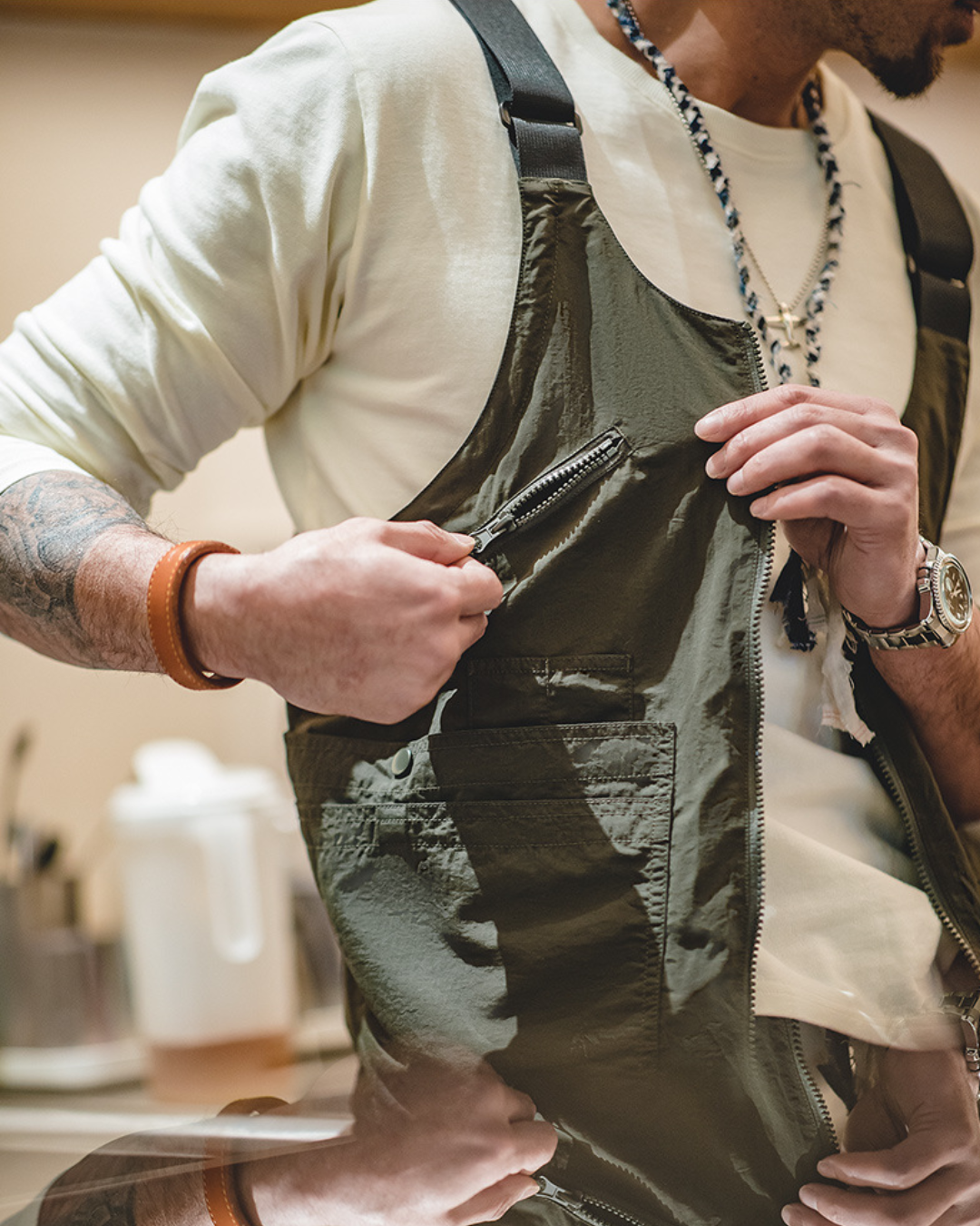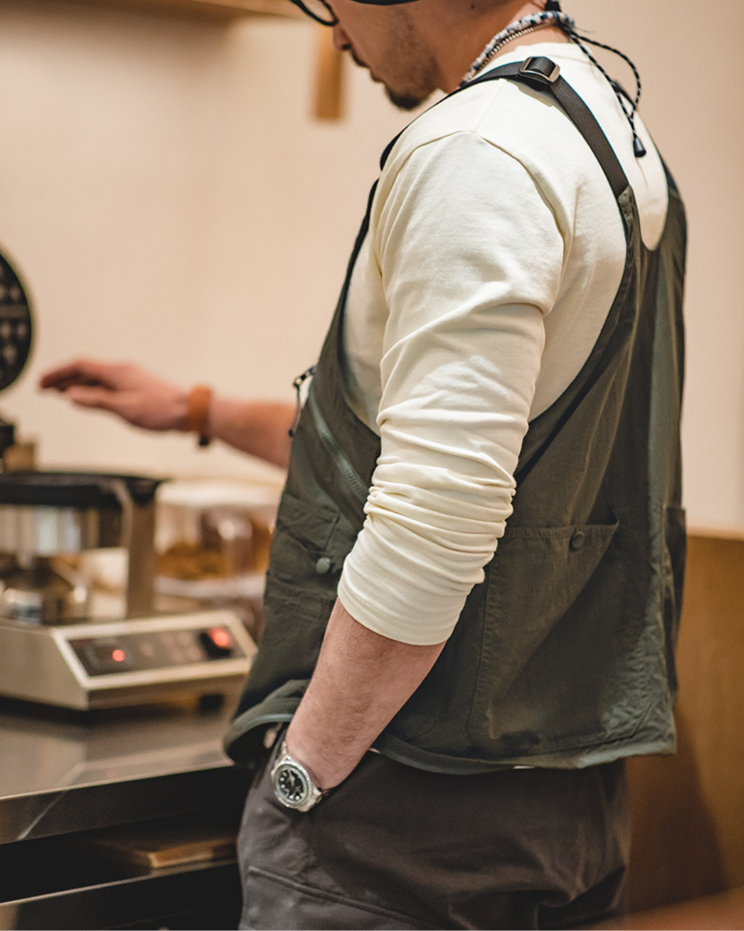 風を通す生地、羽織るだけで雰囲気が出るシルエット。汗もシワも味になります。