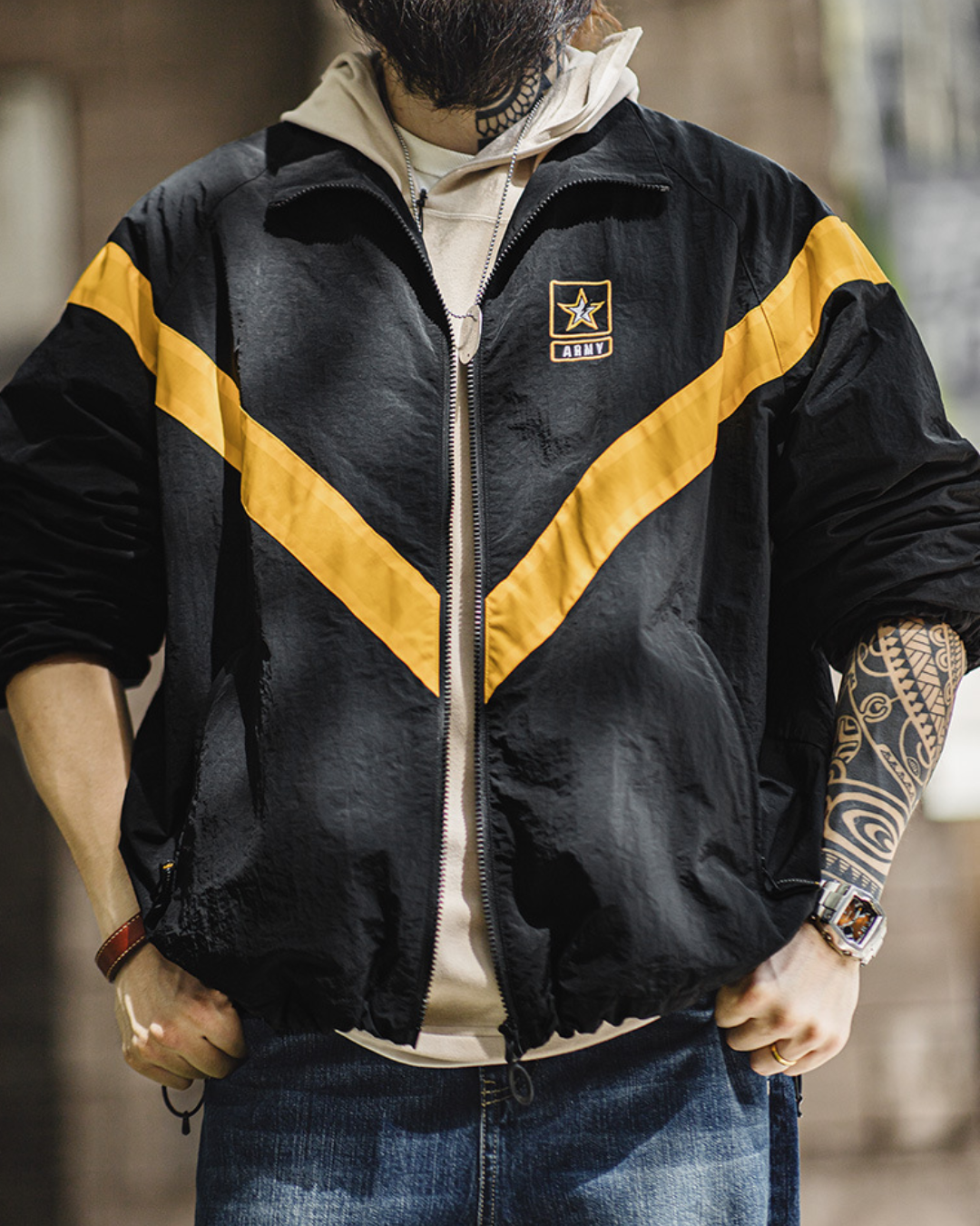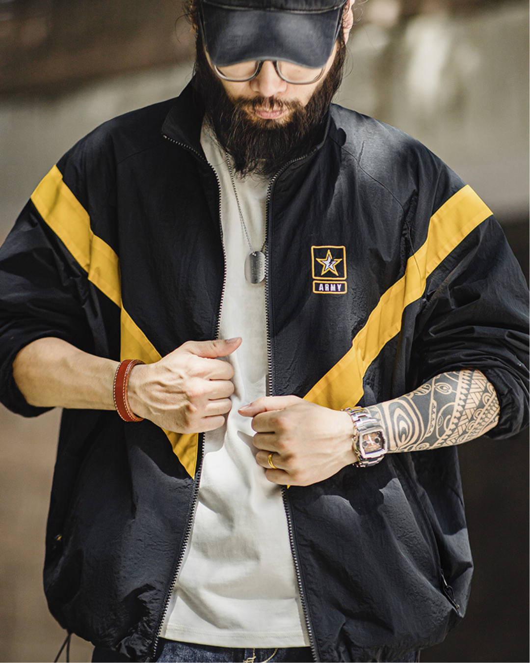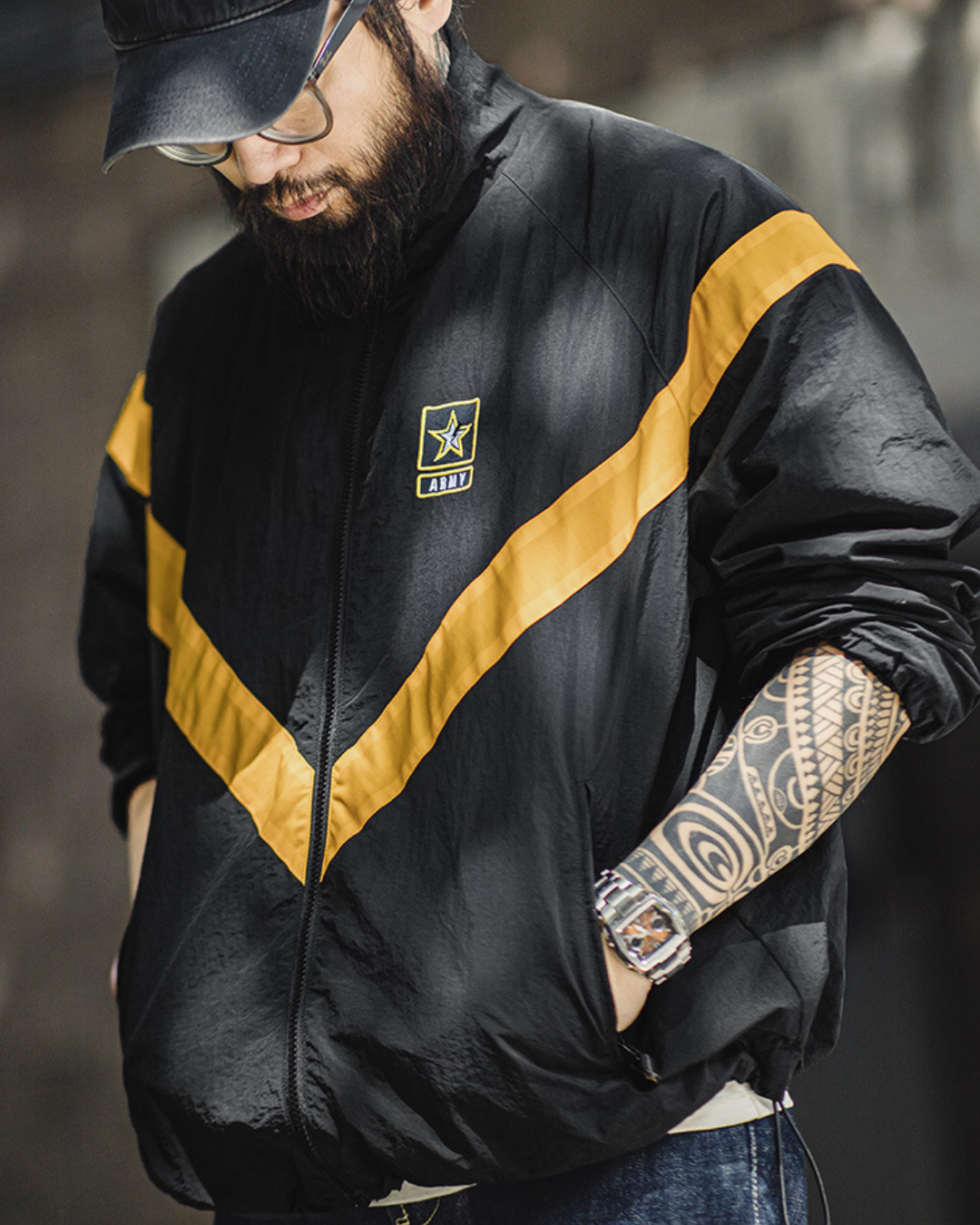 ガシッとした生地感に、無骨なディテール。