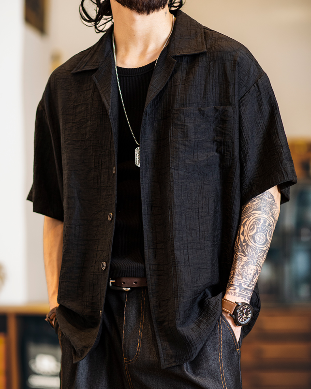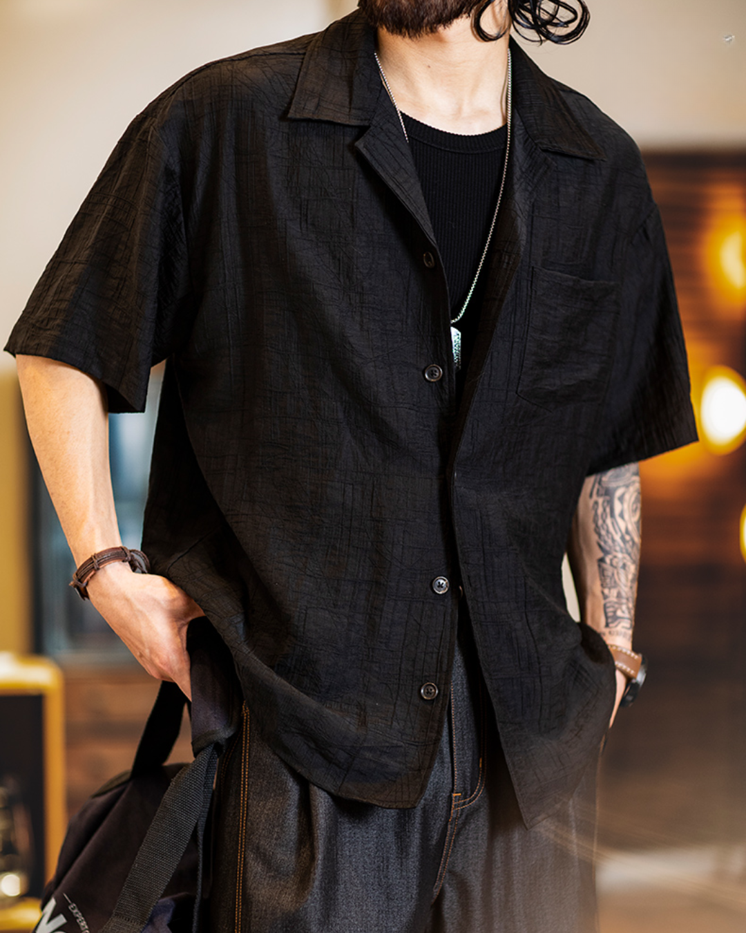 風を通す生地、羽織るだけで雰囲気が出るシルエット。汗もシワも味になります。