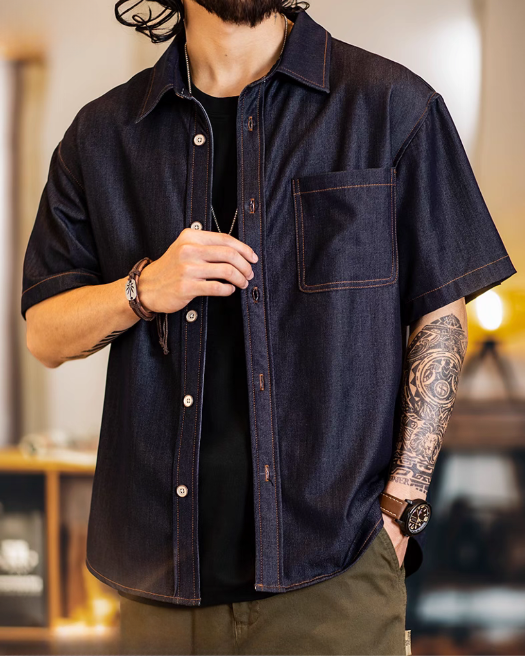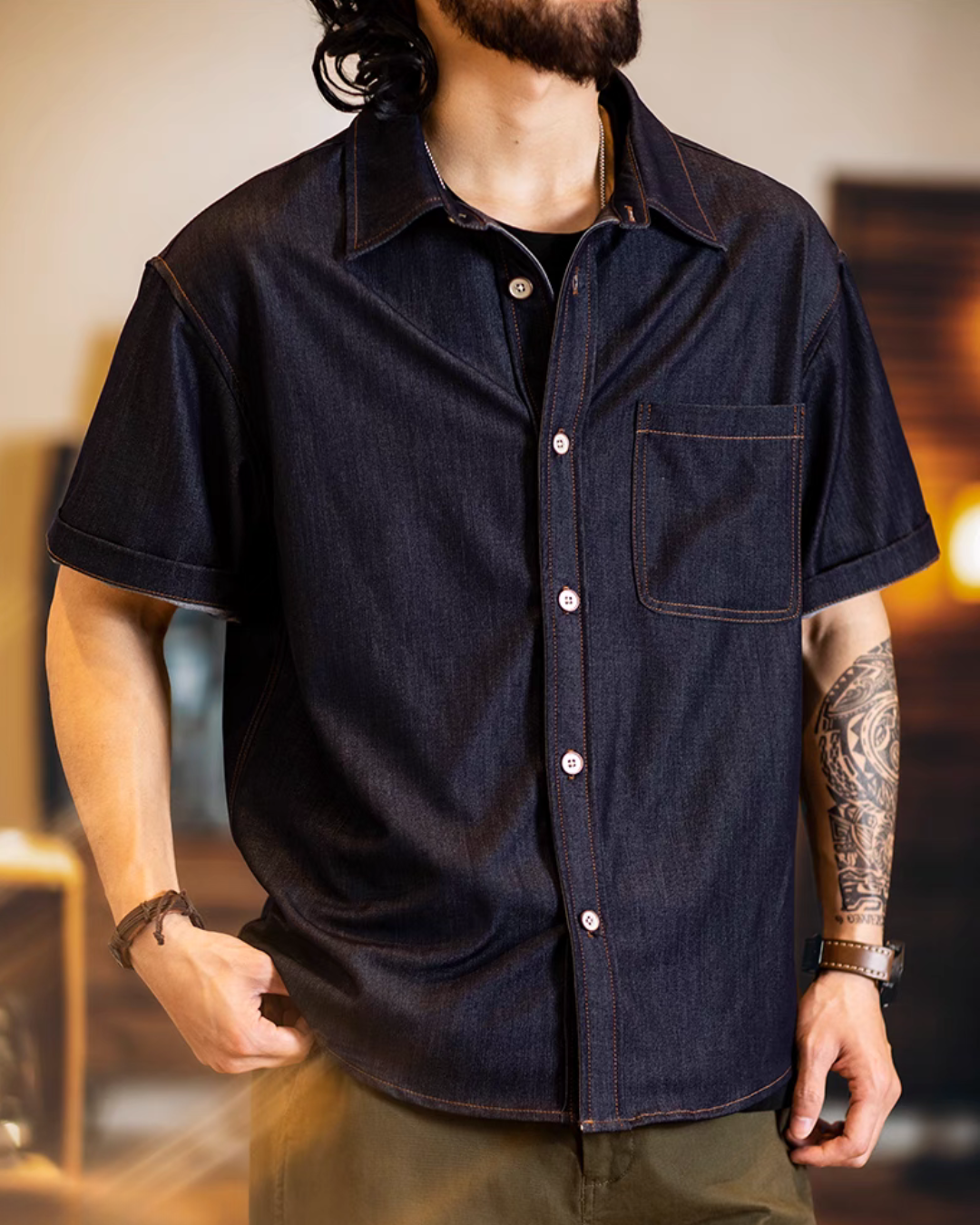 オレンジビル ダブルポケットデニムワークシャツ 1687