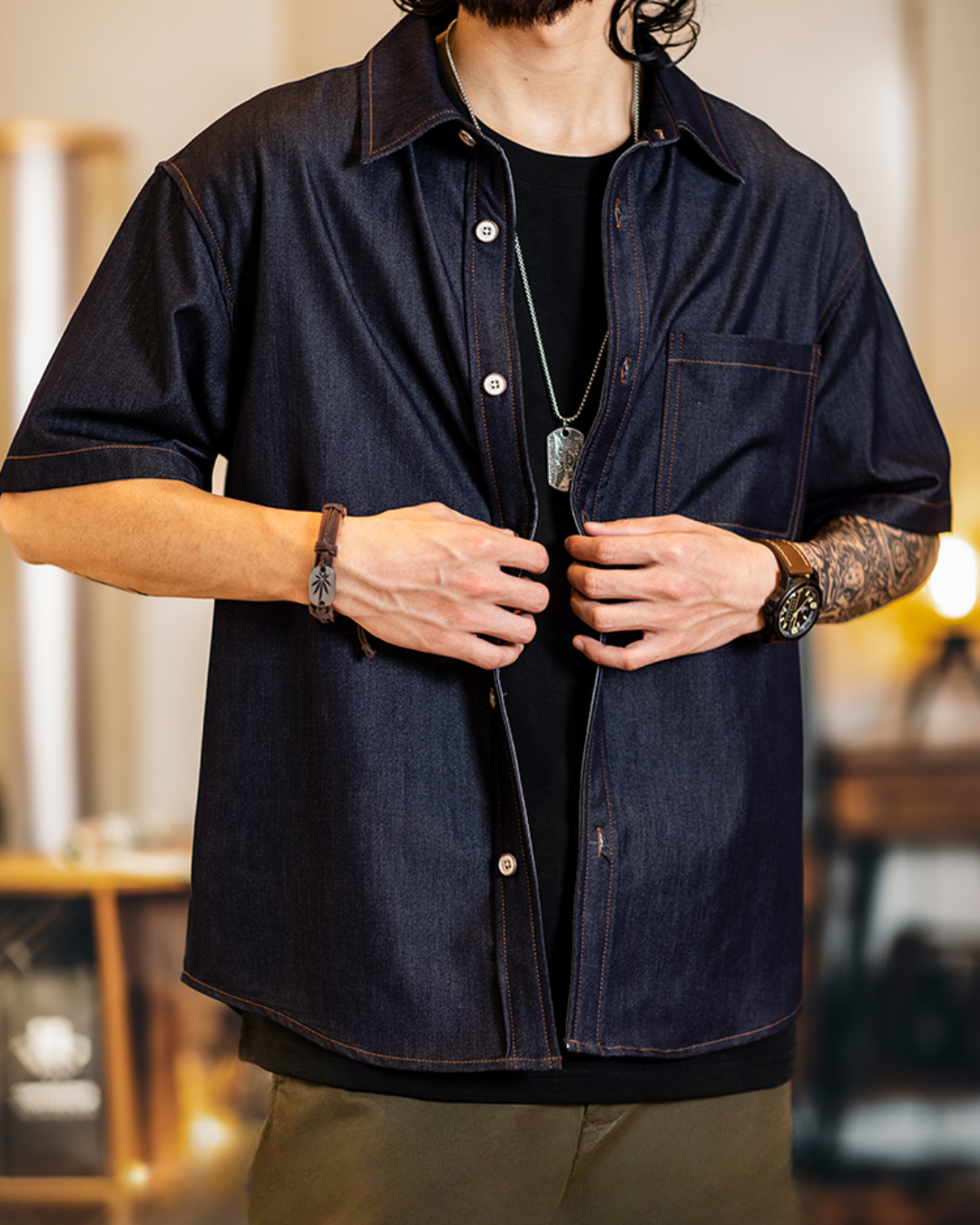 風を通す生地、羽織るだけで雰囲気が出るシルエット。汗もシワも味になります。