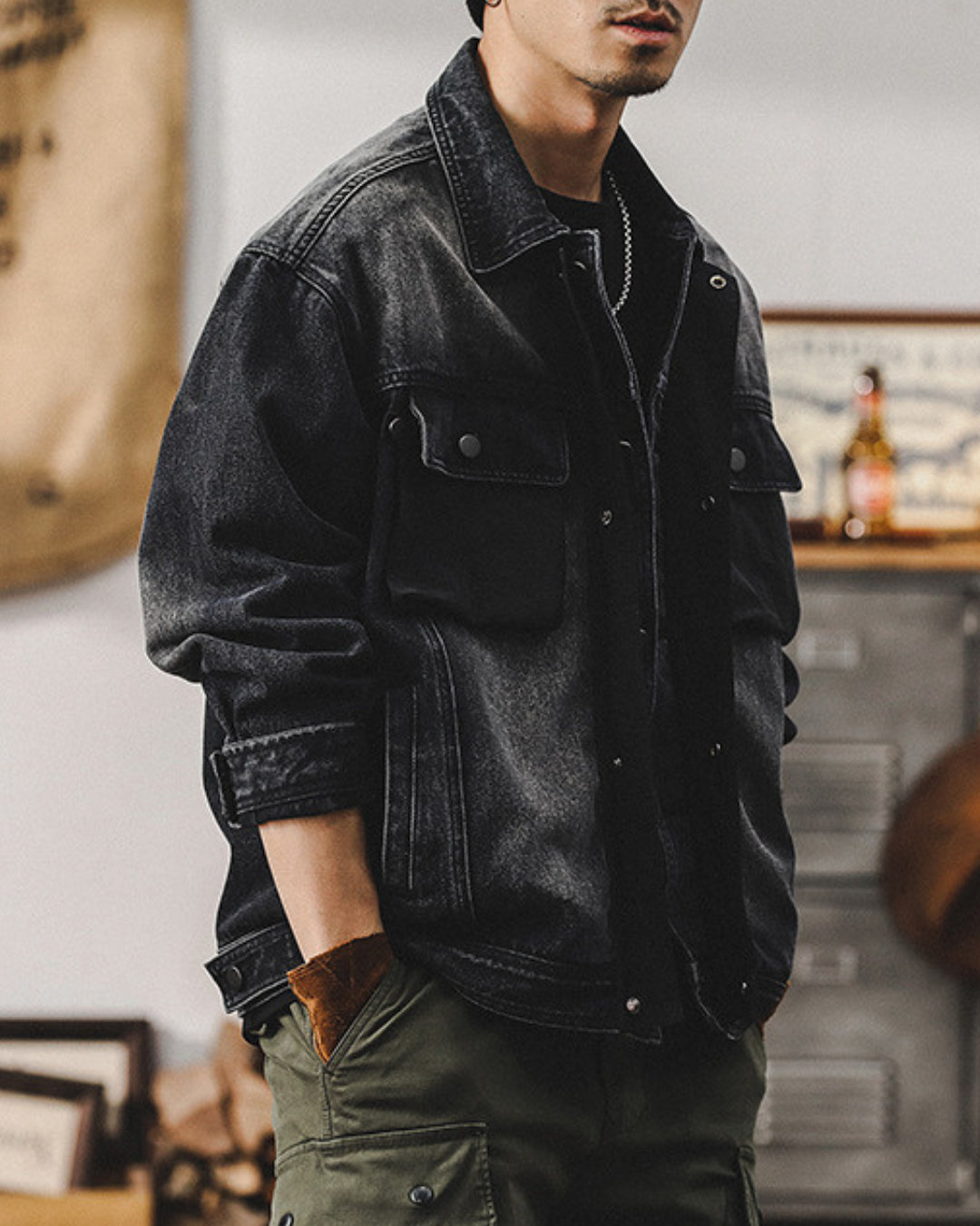 ケイラ― ダブルポケットウォッシュブラックデニムジャケット 2170