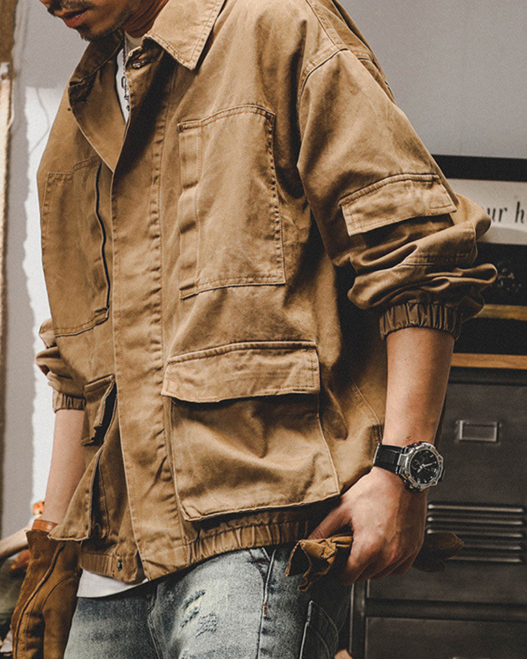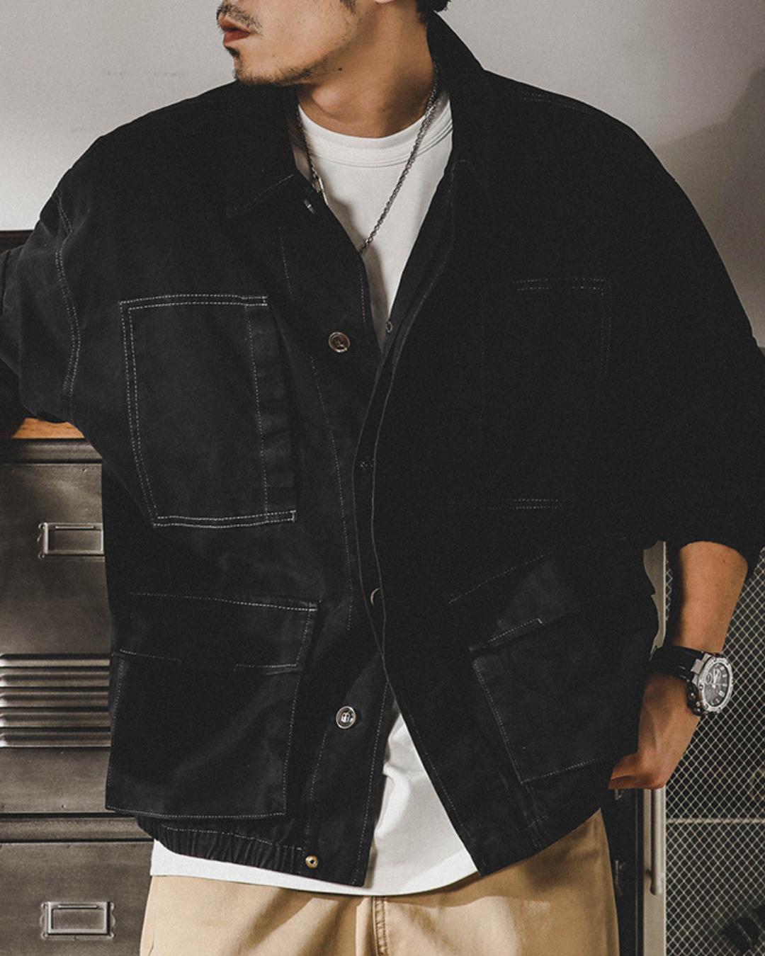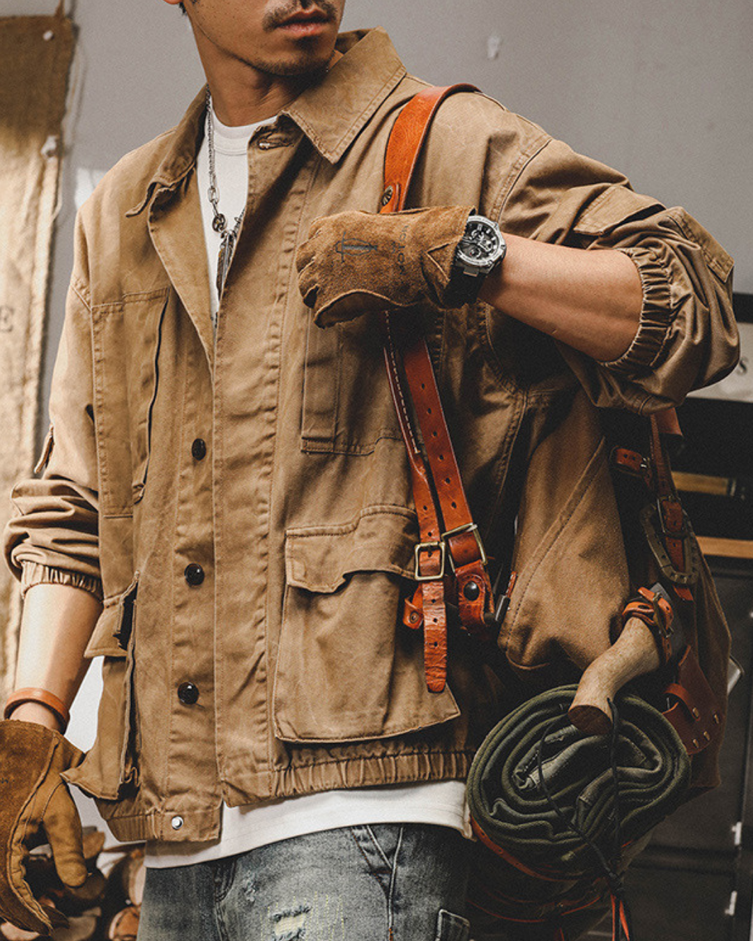 ガシッとした生地感に、無骨なディテール。