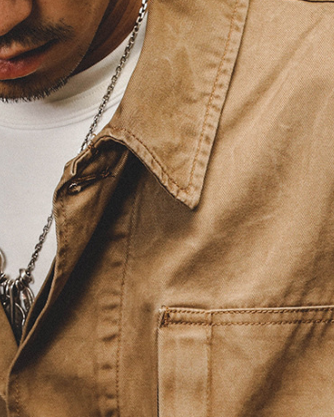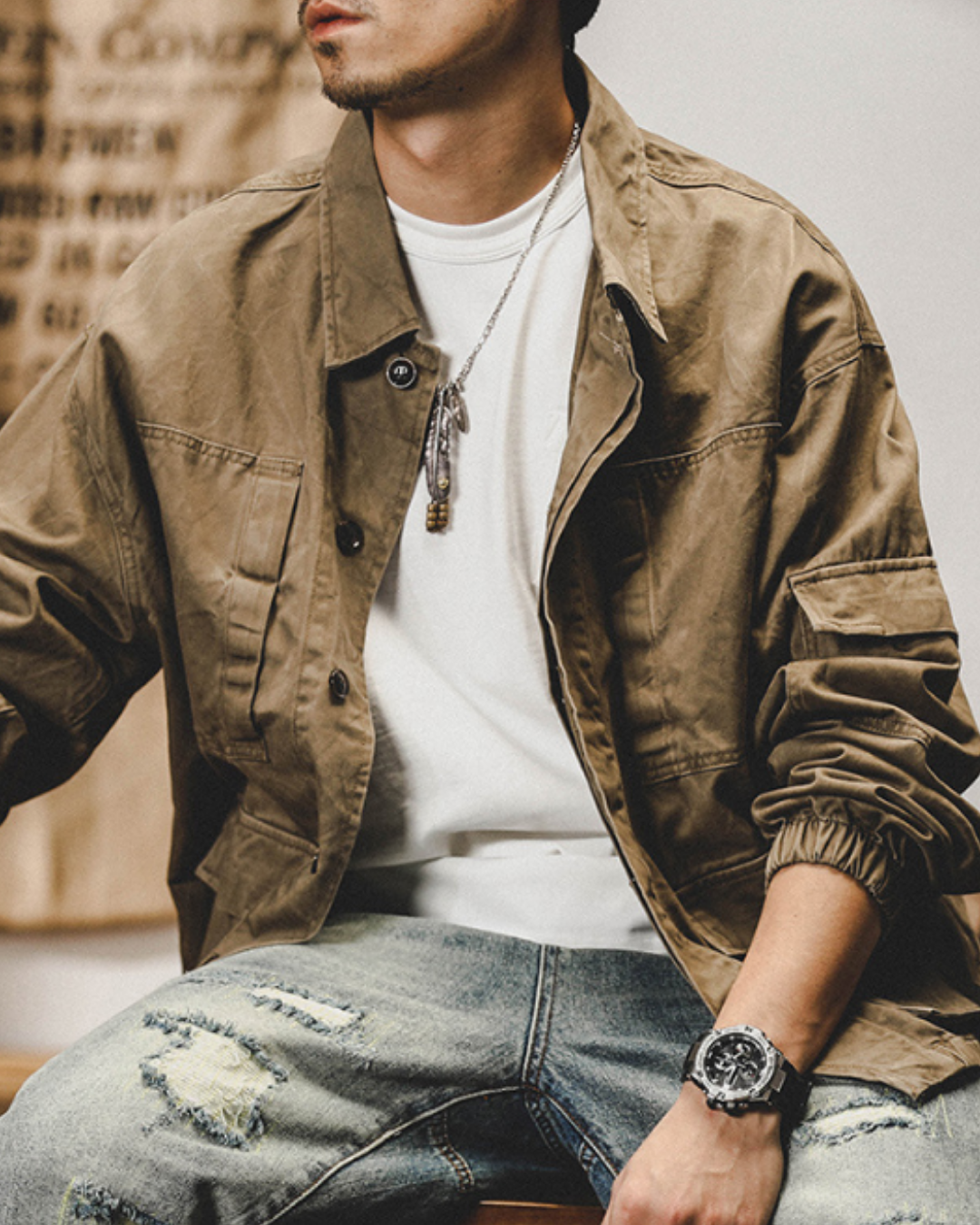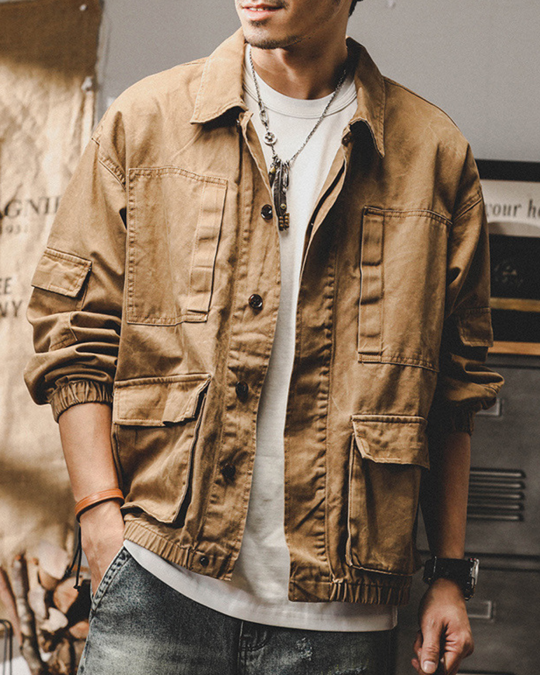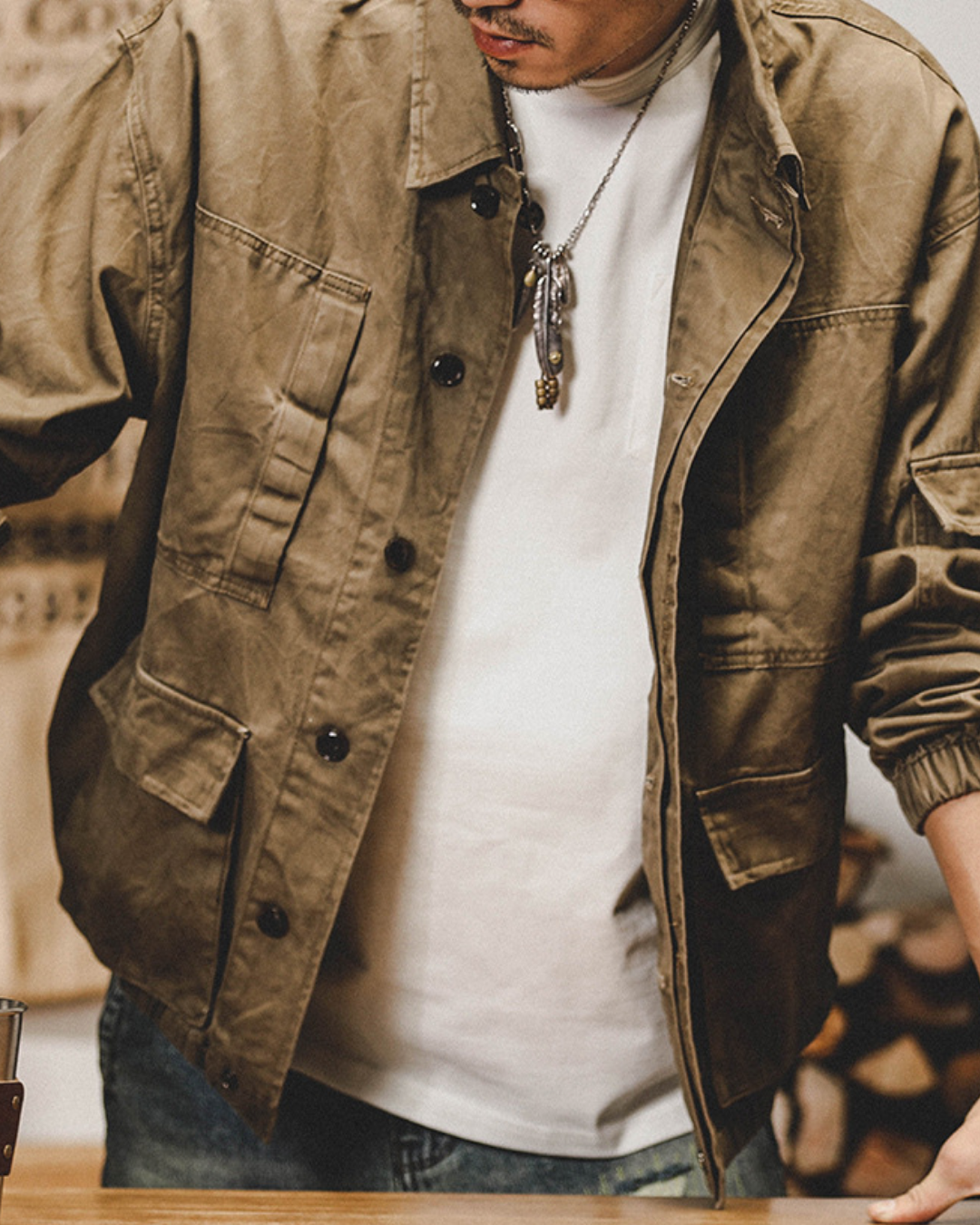 ガシッとした生地感に、無骨なディテール。