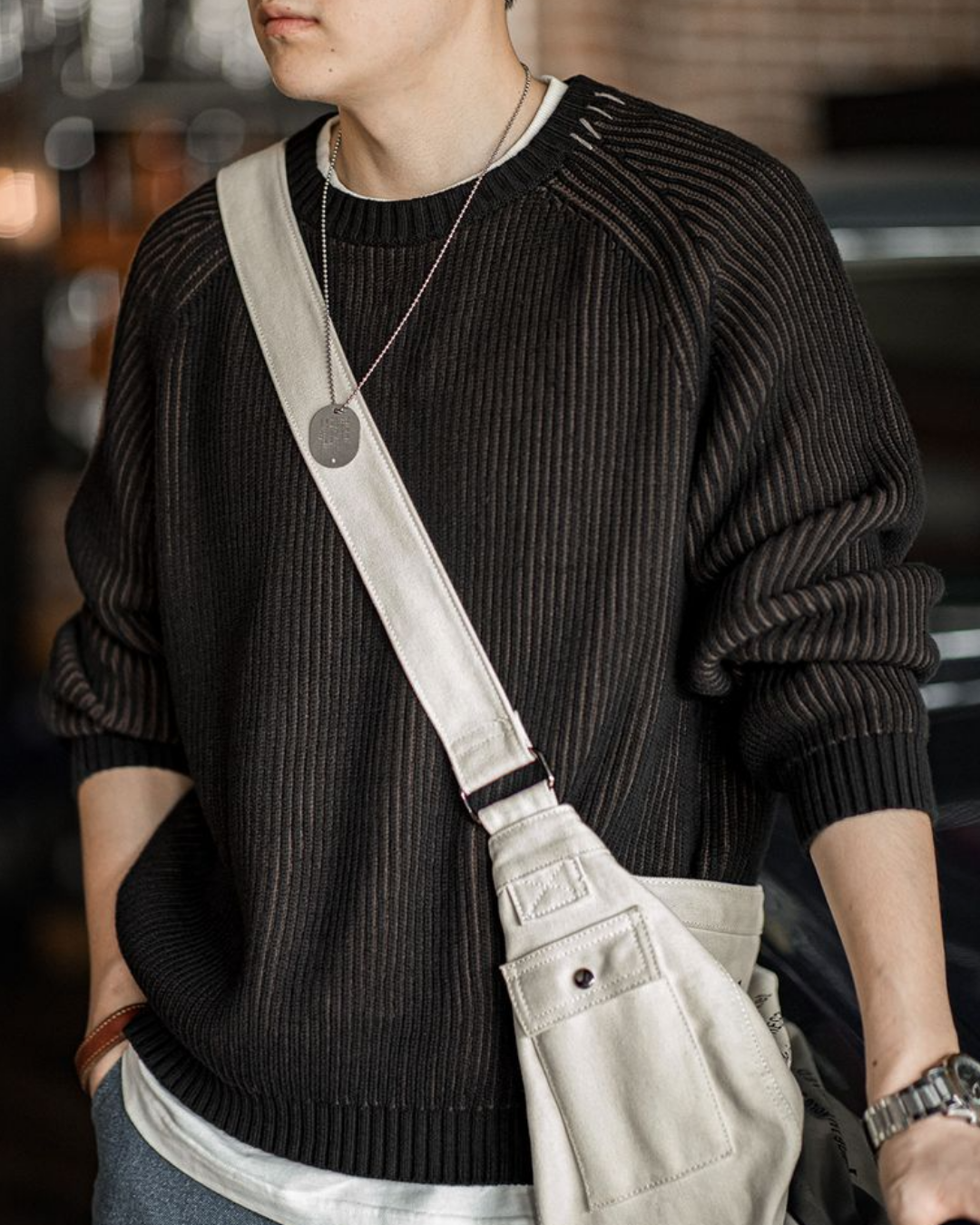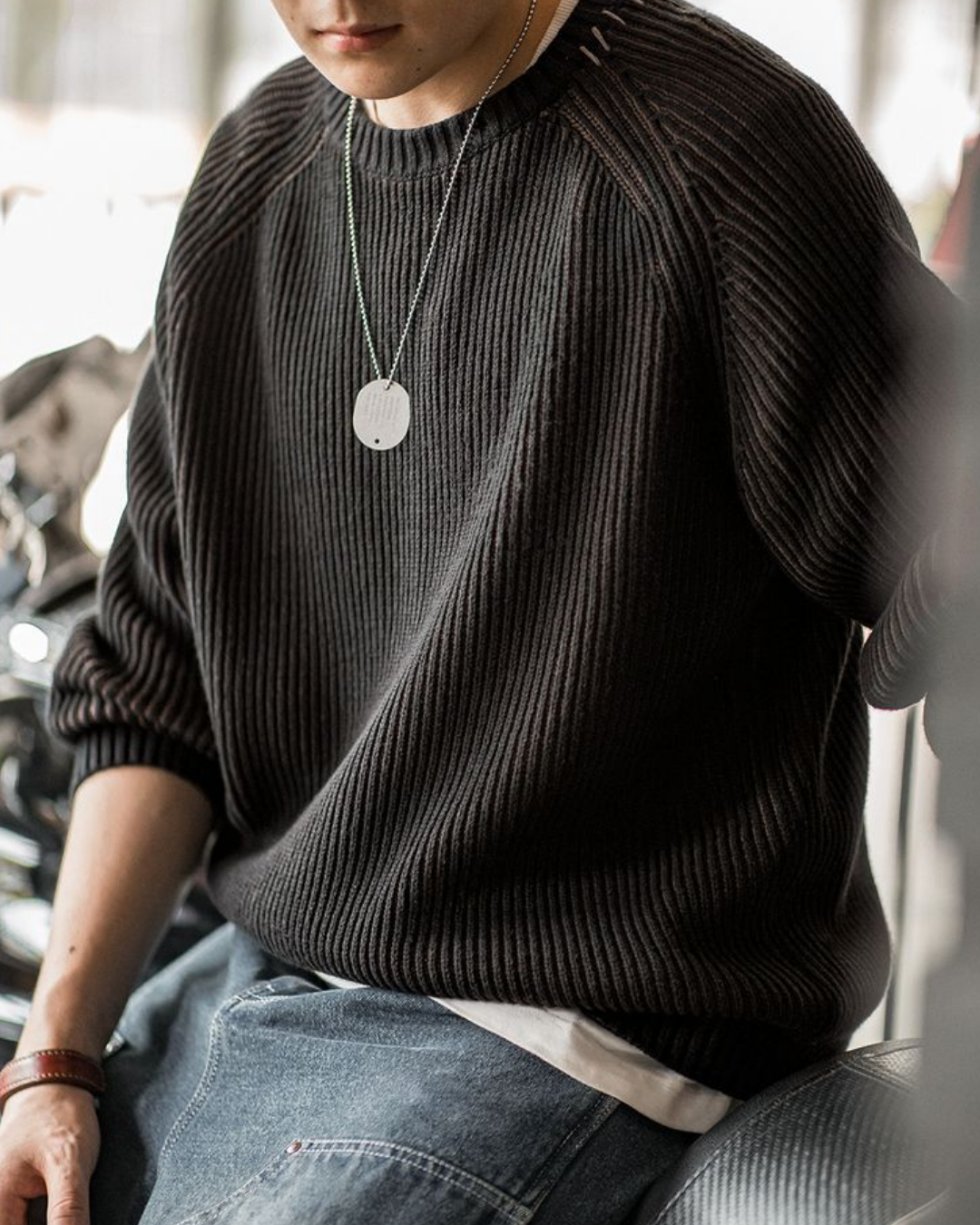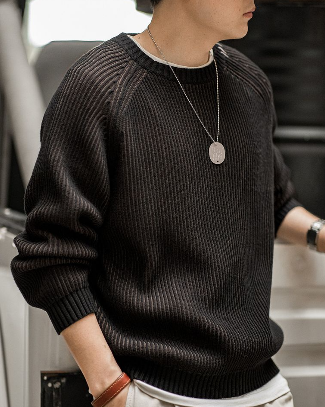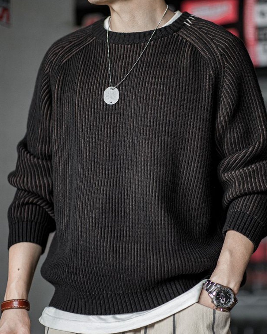 オーレリア ステッチツートンカラーリブニットプルオーバー 2192