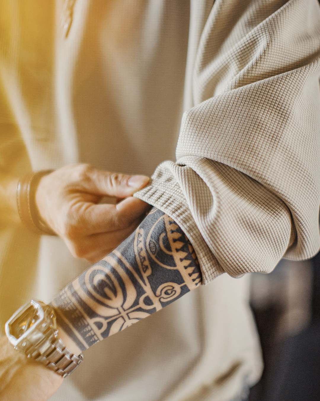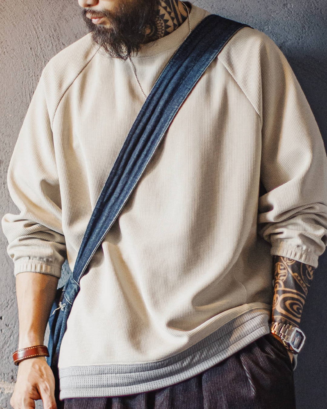 メドフォード 裾ドロストワッフル編みラグランスウェット 2249