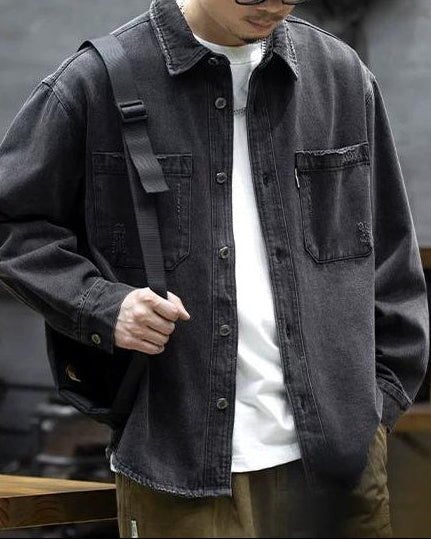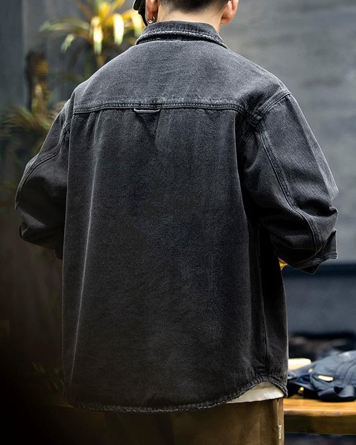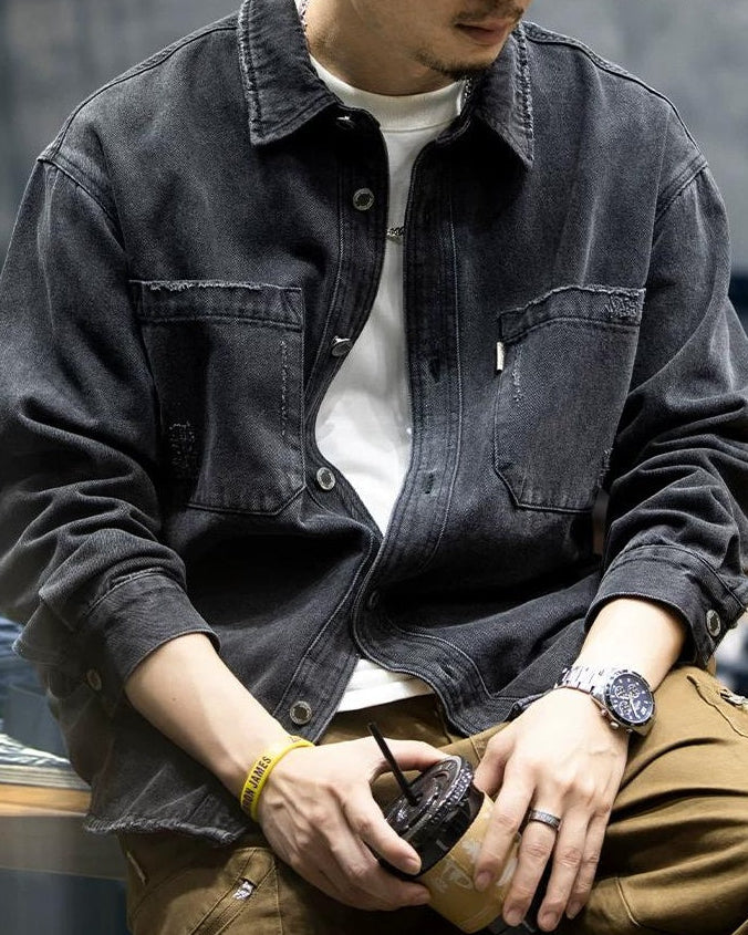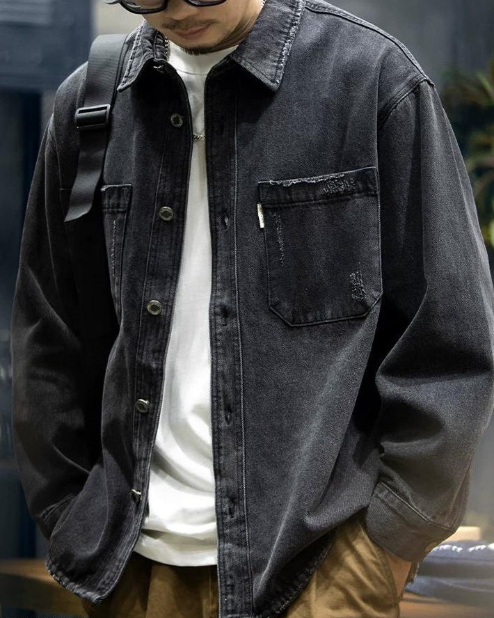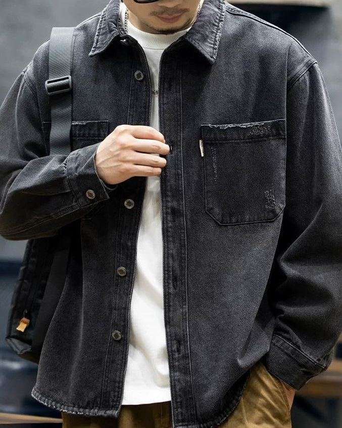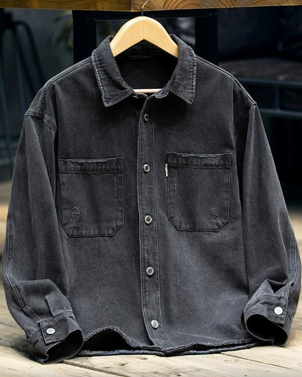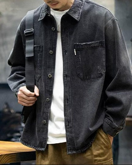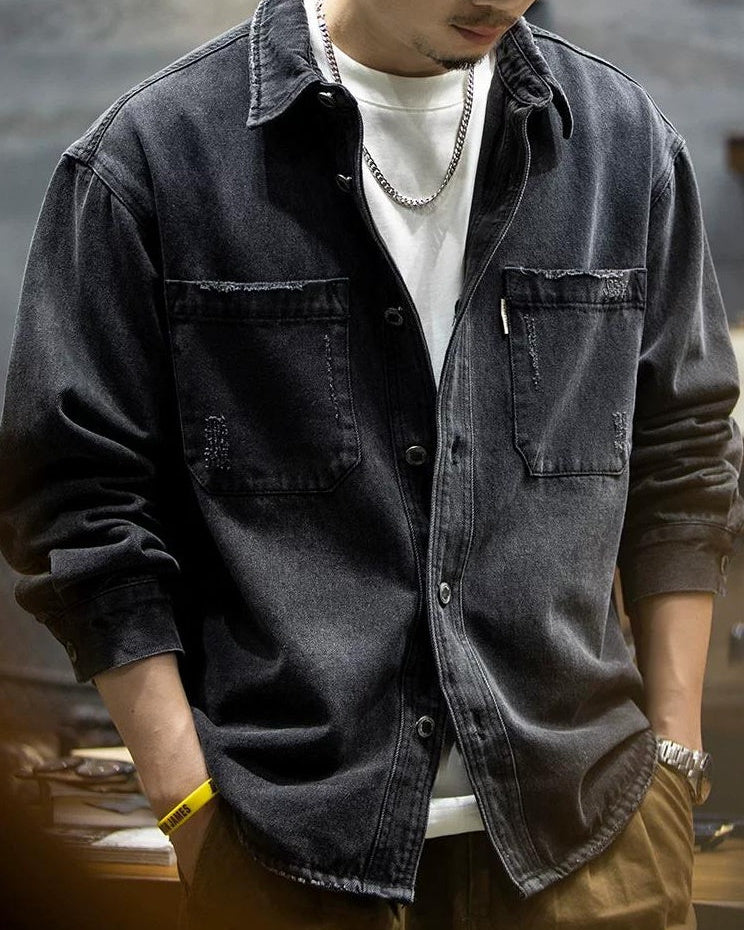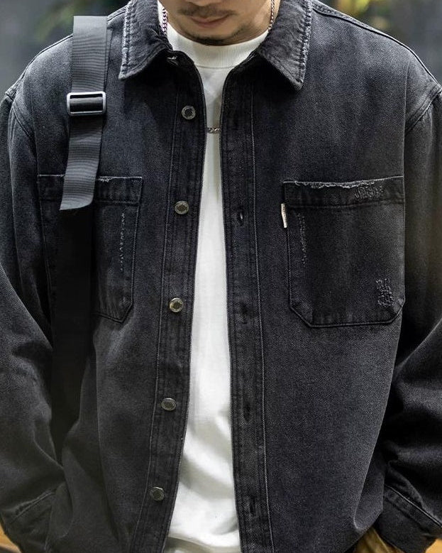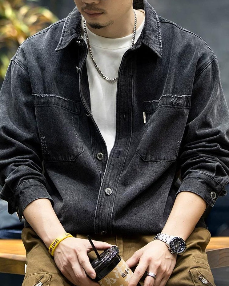 ブラックスバーグ ウォッシュドブラックダメージデニムシャツ 2360