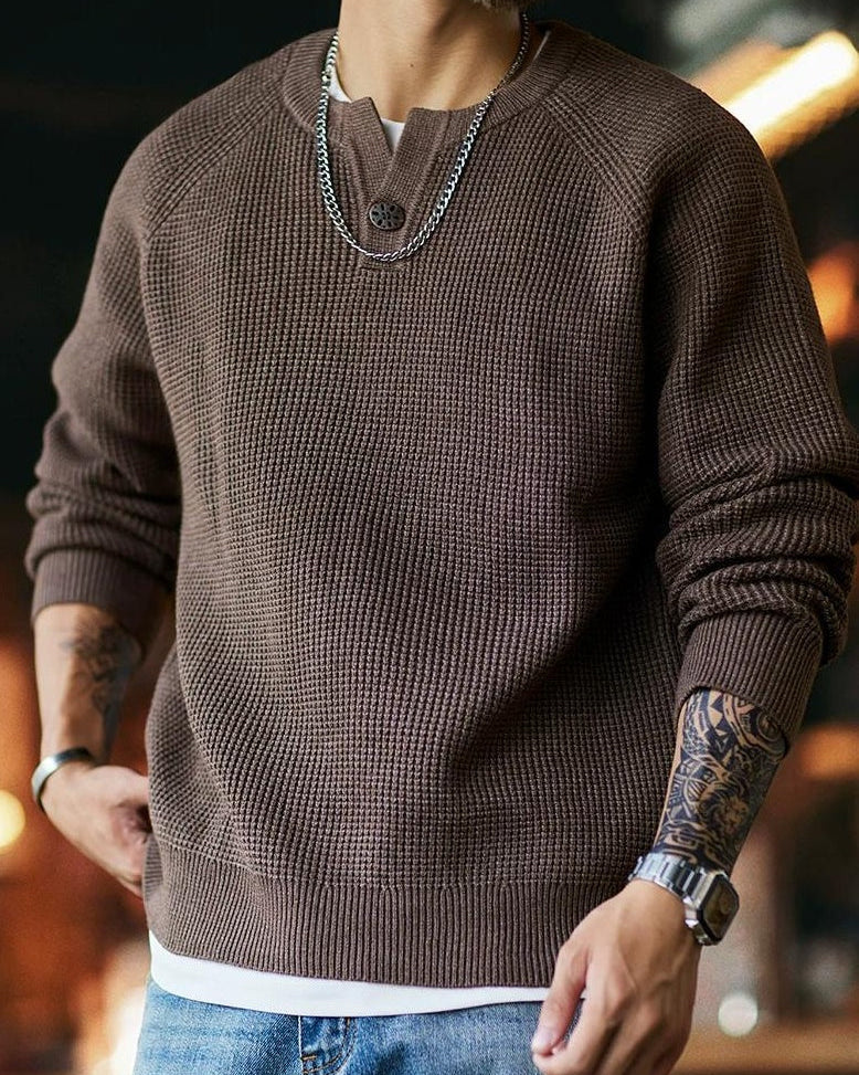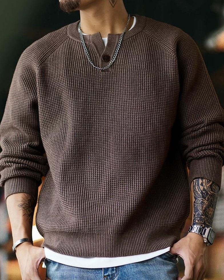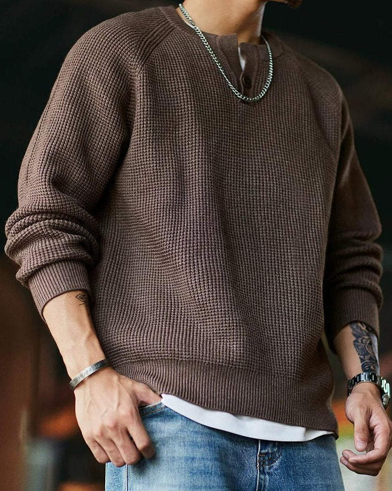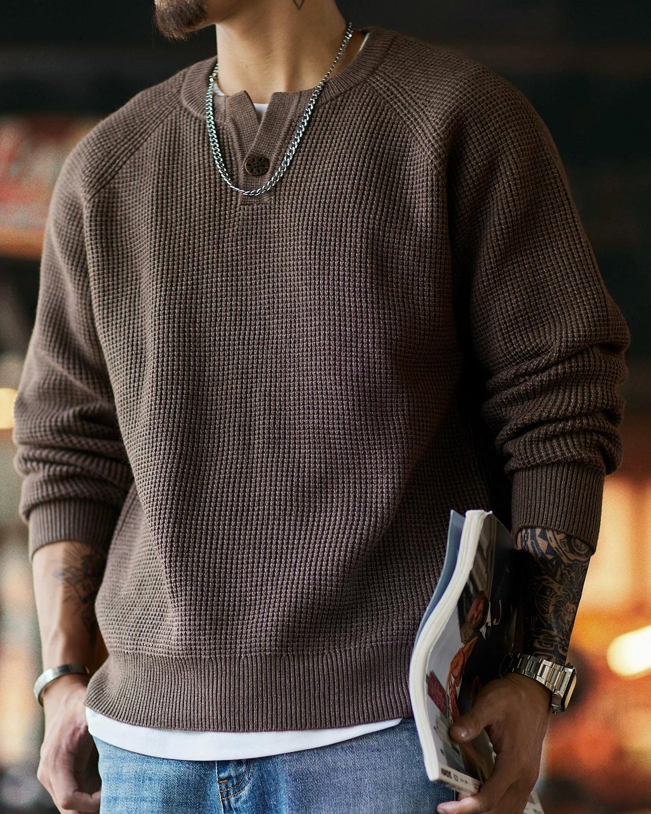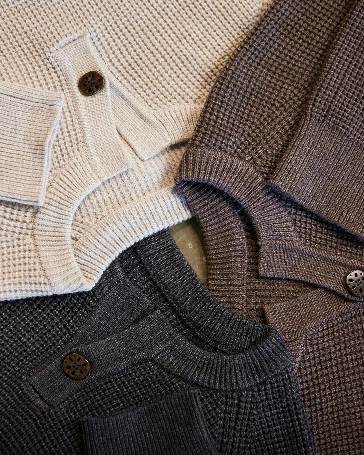 エディンバーグ ヘンリーネックワッフルニットプルオーバー 2392