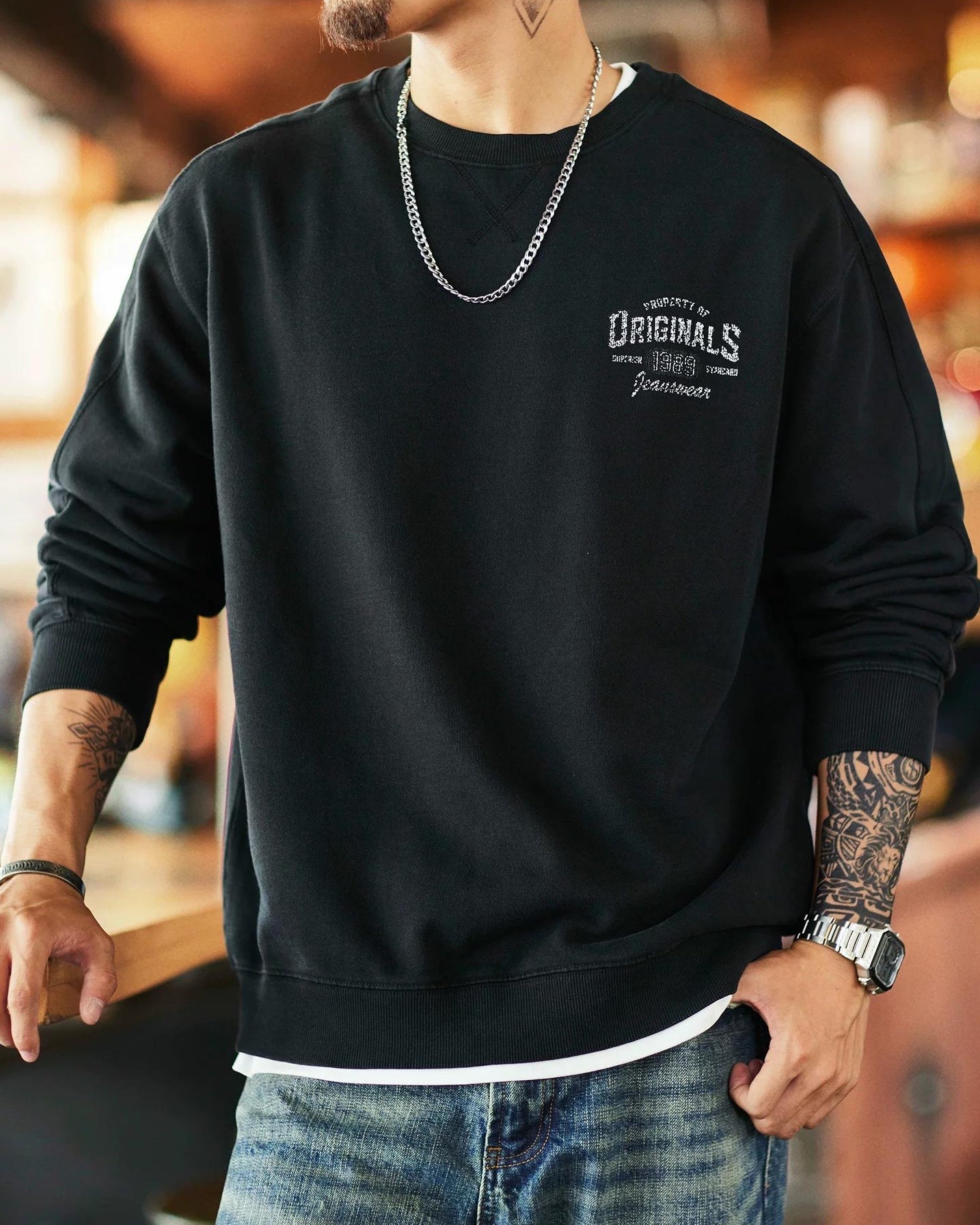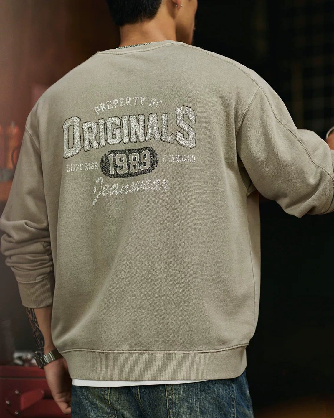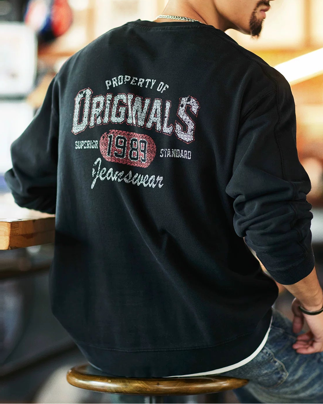 ワクサハチー バックプリント裏フリーススウェットプルオーバー 2394