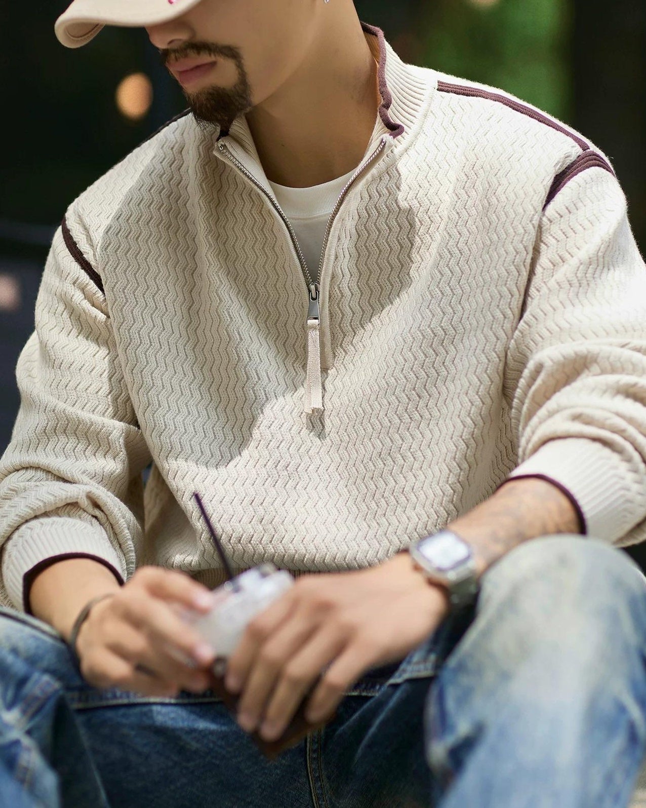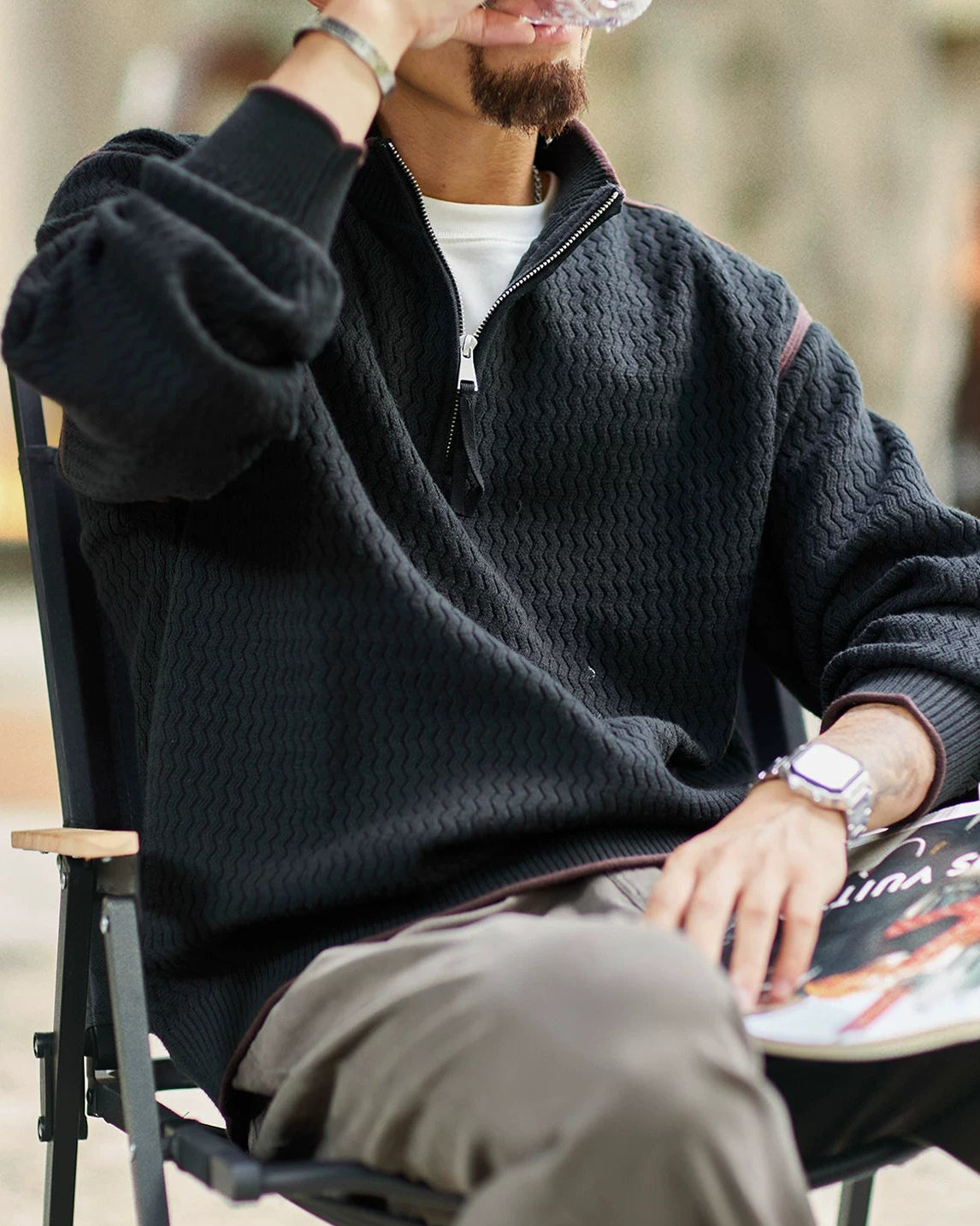 チカシェイ ジオメトリックハーフジッププルオーバー 2397