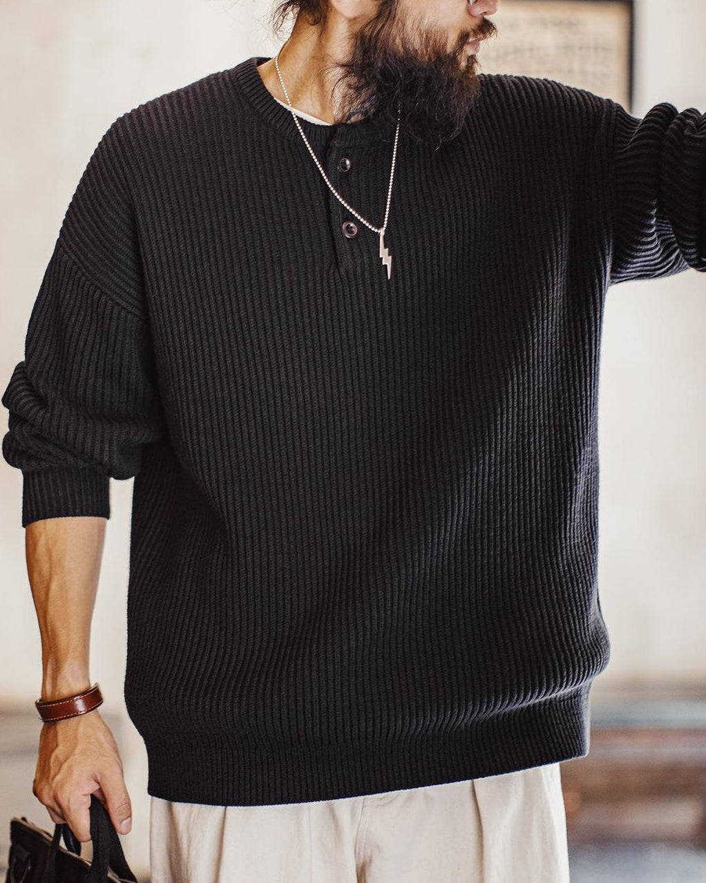 サンダスキー リブ編クルーヘンリーセーター 2414