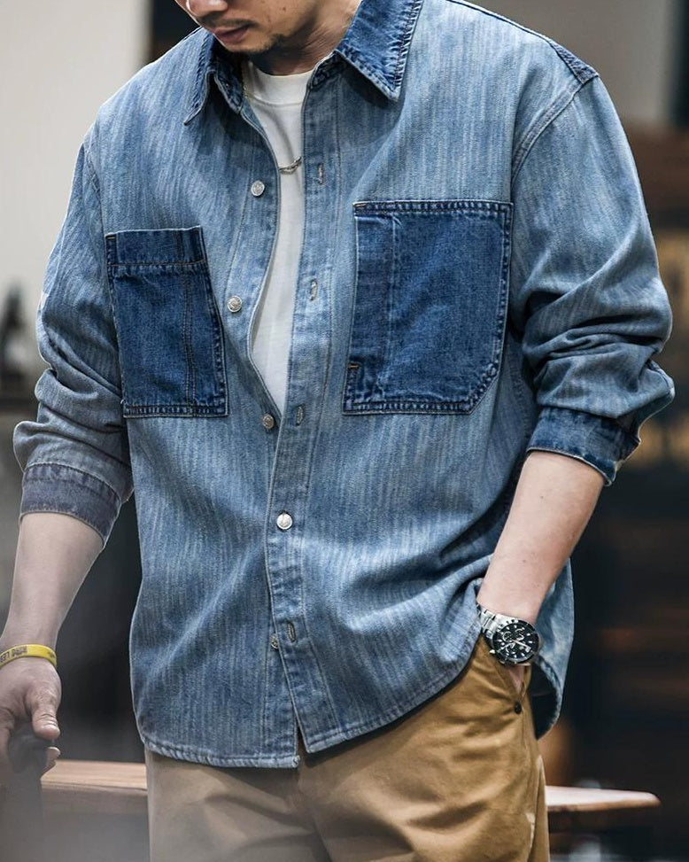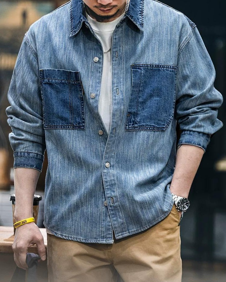 エンタープライズ ダブルポケットコントラストパネルシャツ 2421
