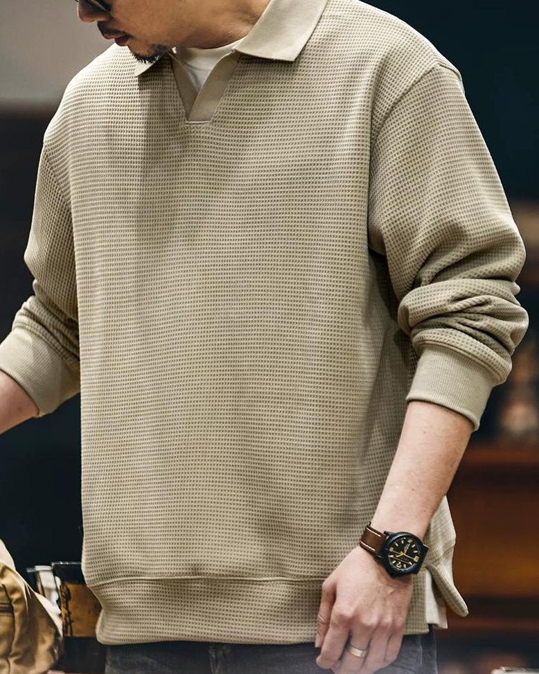 クインジー スキッパーポロワッフルプルオーバー 2445