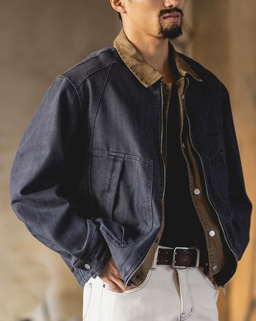 ウェスタリー バイカラー襟切替ラグランワークブルゾン 2491