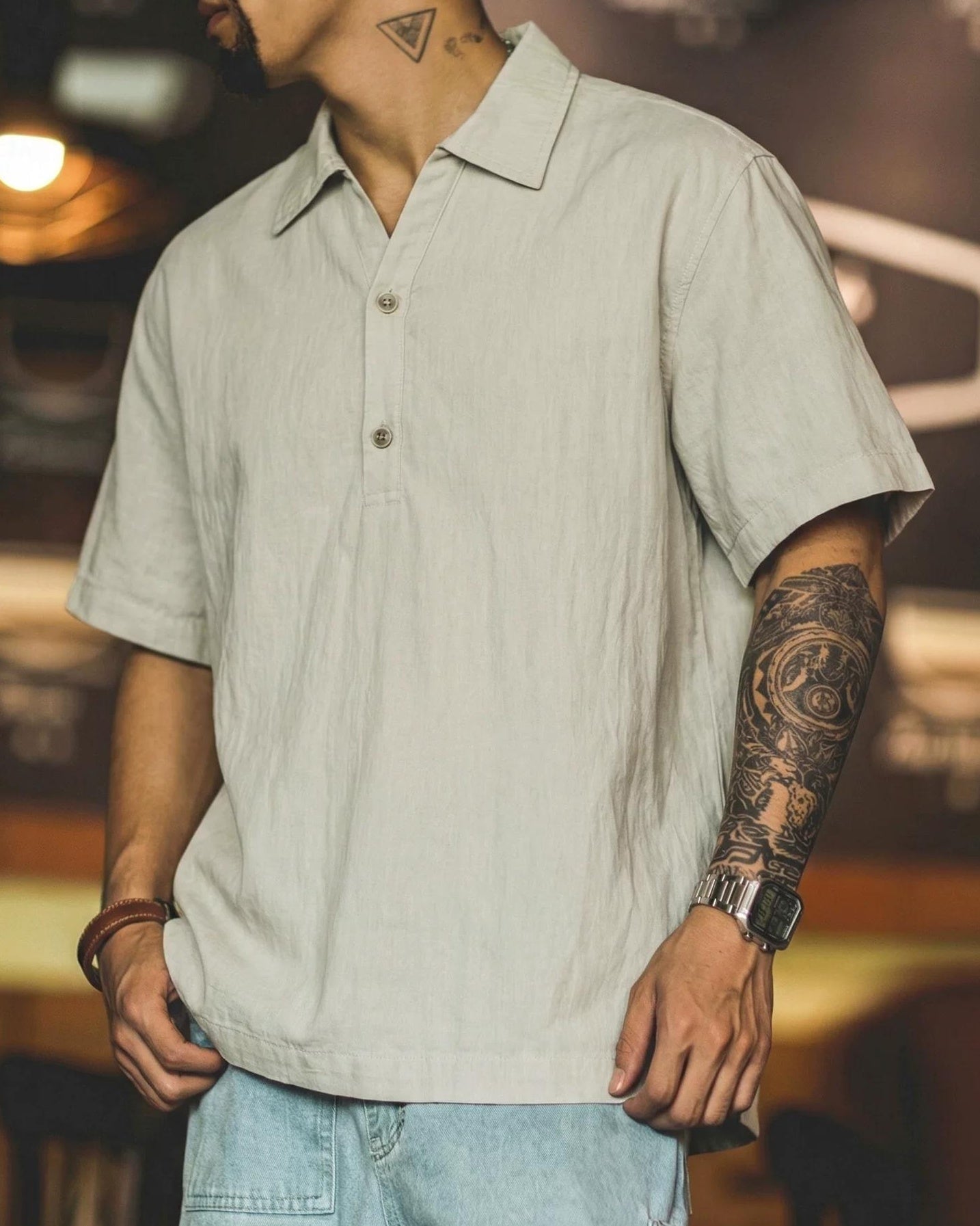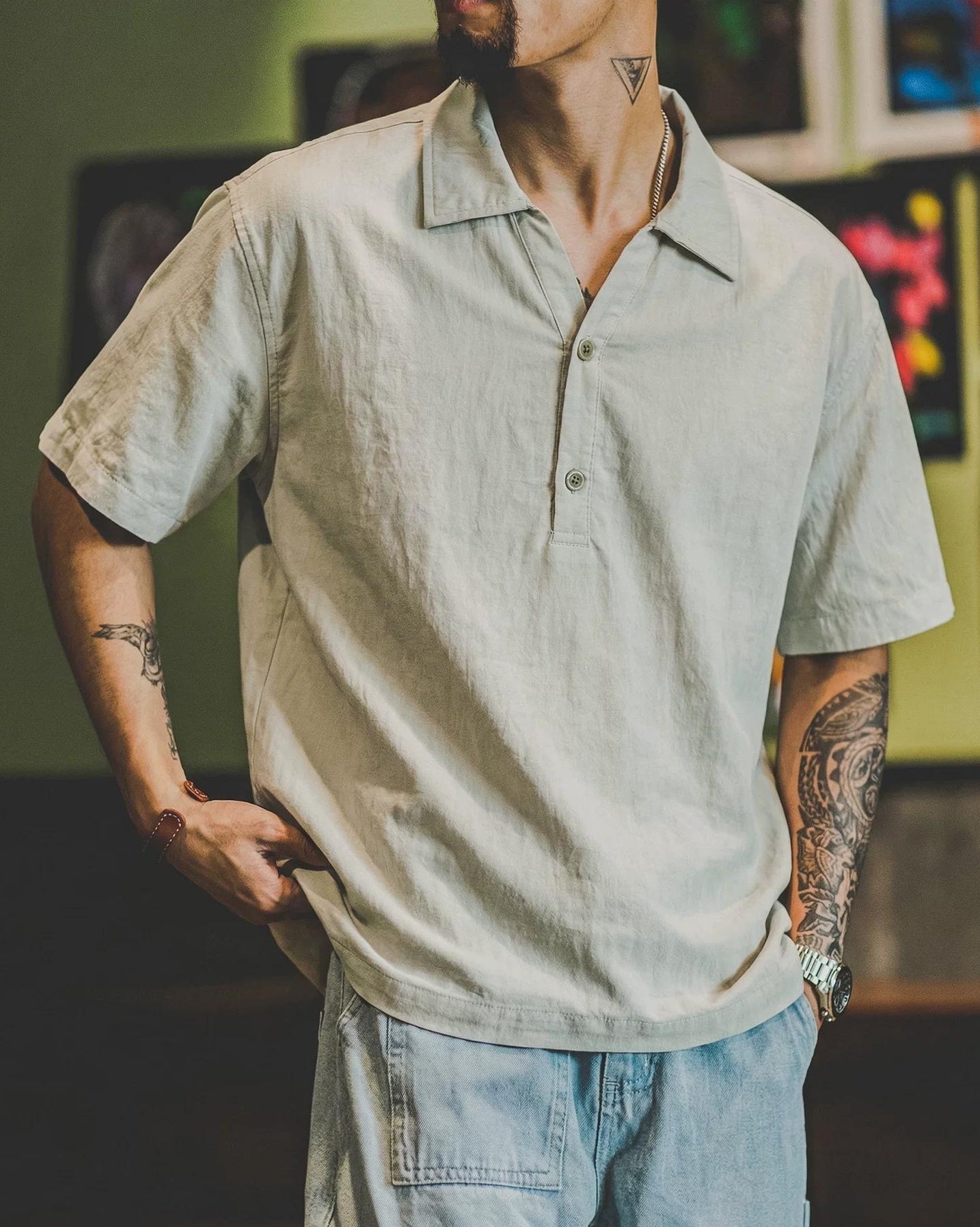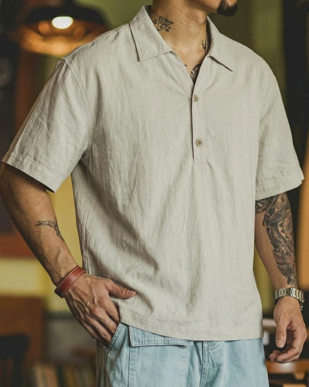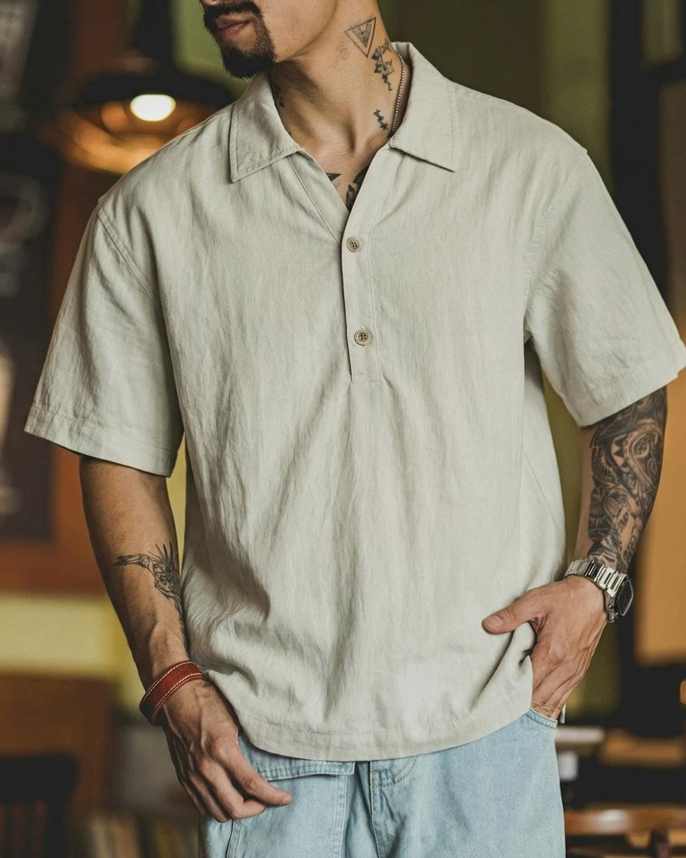 ラトン Vネックハーフボタンプルオーバーシャツ 2592