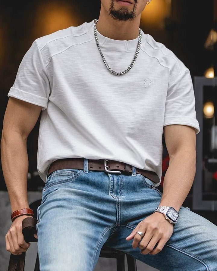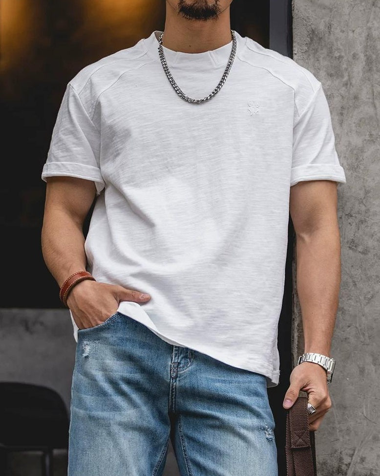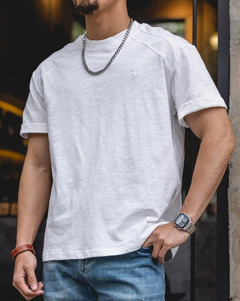 ホワイトフィッシュ ロールアップスリーブクルーネックトップス 2597