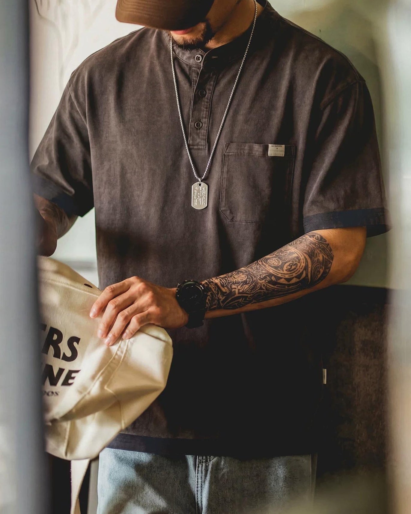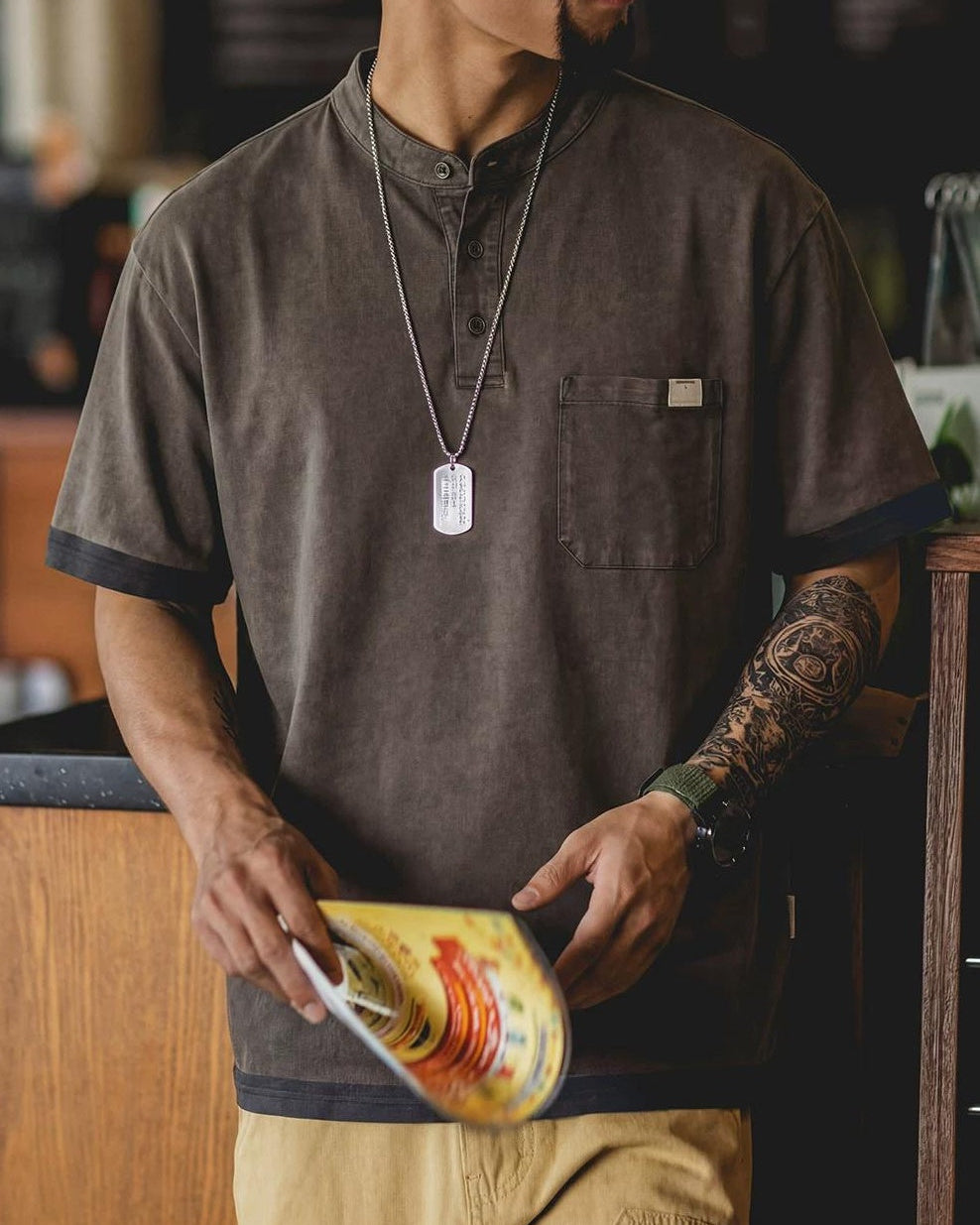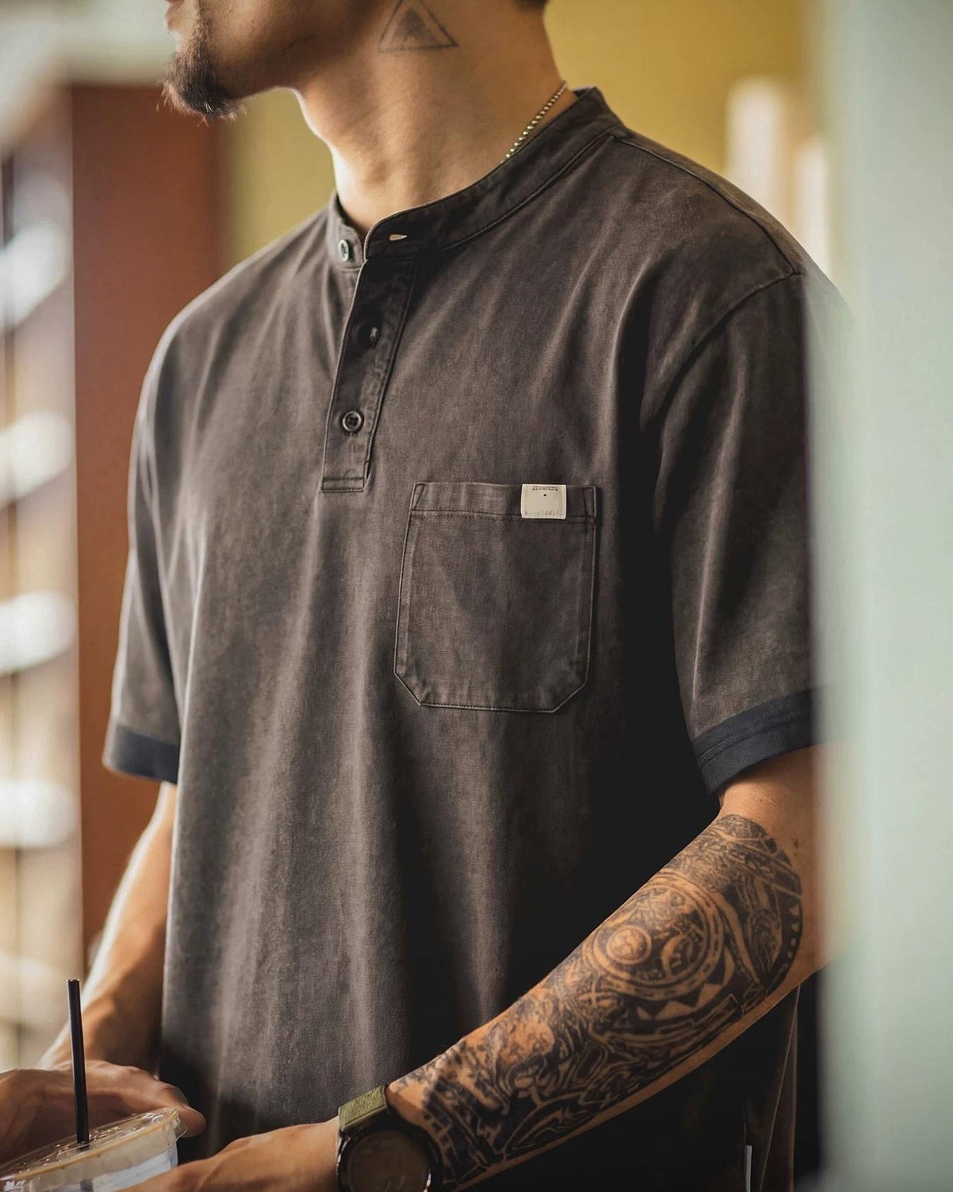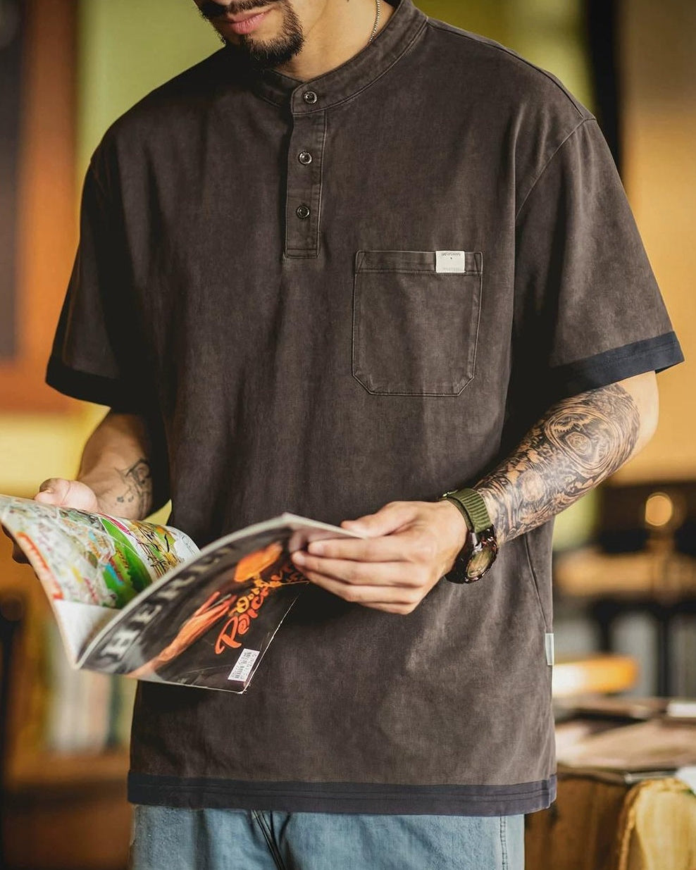 プレインビュー ポケットヘンリーネックトップス 2606