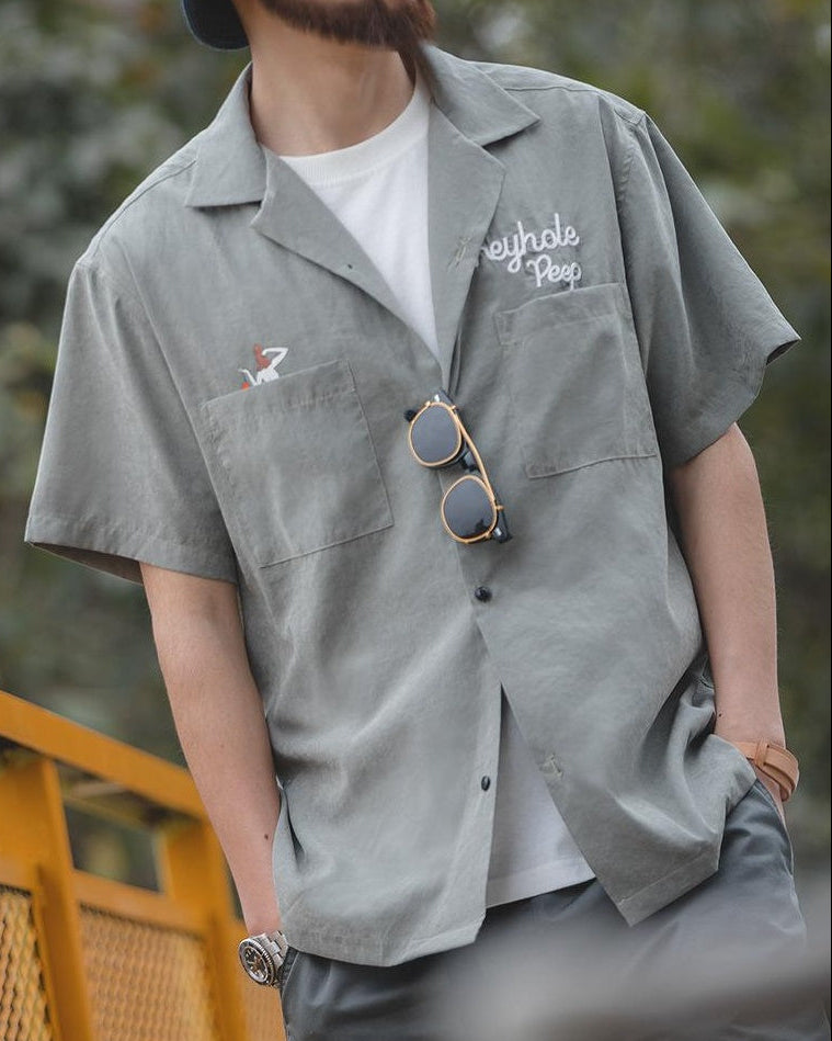 オイルシティ レタードエンブロイダリーオープンカラーシャツ 2635
