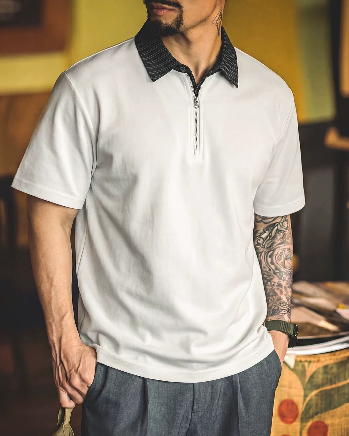 パレスティン クレリックハーフジップポロシャツ 2643